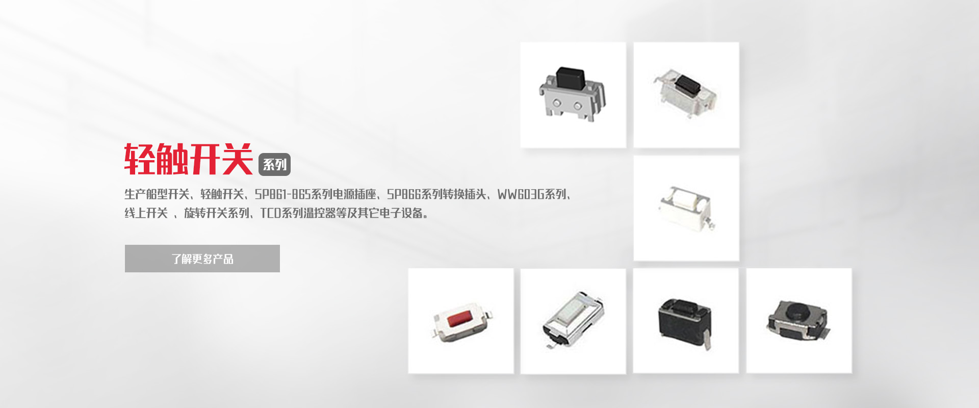 致力于船型開關(guān)、負(fù)載開關(guān)、輕觸開關(guān)、微動(dòng)開關(guān)等產(chǎn)品的研發(fā)、制造、銷售。